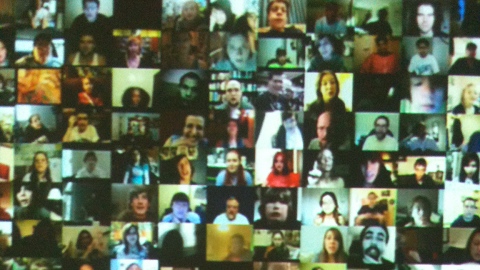 Tante facce che parlano davanti ad una webcam, tutti messaggi in bottiglia, gettati nel mare di You Tube e messi uno accanto ad un altro: centinaia di volti, centinaia di suoni che diventano un rumore indistinto: dal chiuso della propria camera al mondo della rete. Un’installazione di grande effetto davanti alla quale ci si domanda: siamo connessi ma soli? O comunque nella solitudine, esiste un luogo virtuale dove lanciare il nostro messaggio?