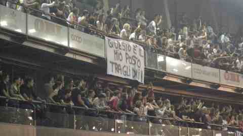In delirio il pubblico, arrivato da varie parti d’Italia, per non perdersi la penultima data del tour che ha registrato il sold out in quasi tutte le serate: uno striscione appeso sulle gradinate fa sapere che “Questo è il mio posto tra gli dei” citando una delle canzoni dell’ultimo album.