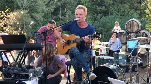 Sting è salito nuovamente sul palco per proseguire con la celebre Sister Moon, canzone che ha dato il nome anche all’omonimo vino da lui prodotto e che quest’anno è stato inserito tra i 100 migliori vini italiani da The Wine Spectator. Infine la chiusura del mini live, con un classico come Message in a Bottle, altra canzone che ha dato il nome ad uno dei rossi IGT e che quest’anno è stato presentato anche nella versione bianco.