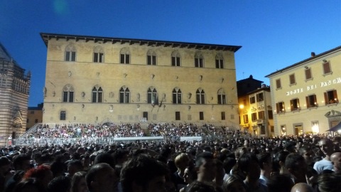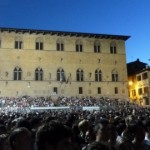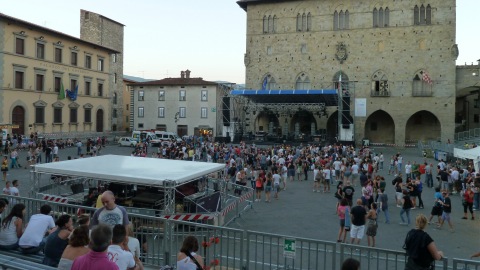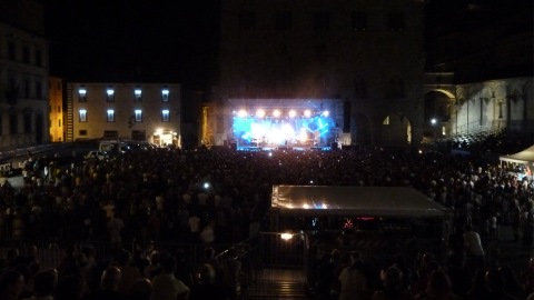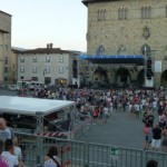 Pistoia ci mette un po’ a scaldarsi, sembra quasi studiare questi piemontesi che si agitano sul palco ma poi si lascia conquistare: il pubblico è eterogeneo e se i più tranquilli seguono il concerto sulle gradinate, in piazza si scatena la festa.