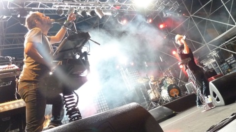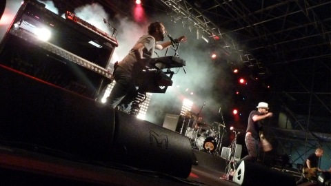 Il concerto è iniziato con la canonica mezz’ora di ritardo: le luci di Piazza Duomo si sono spente alle 22 in punto per lasciare la scena ai 5 ragazzi di Torino. Si comincia subito con “Ratto”, bellissimo pezzo scritto per racconatare chi è costretto ogni giorno a sopravvivere in una condizione di emarginato o clandestino e che oggi può assumere nuovi significati nell’attuale condizione economica dell’Italia (“l’unica ambizione che hai è stare in piedi, adesso”), per proseguire con la più recente “Veleno” e ancora un tuffo all’indietro con “Corpo a Corpo”.