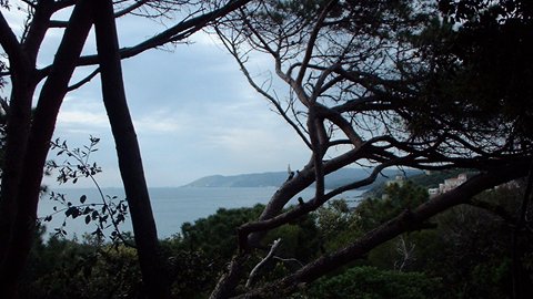 Una pineta ombrosa con pini marittimi e domestici e gli arbusti tipici della macchia mediterranea.
