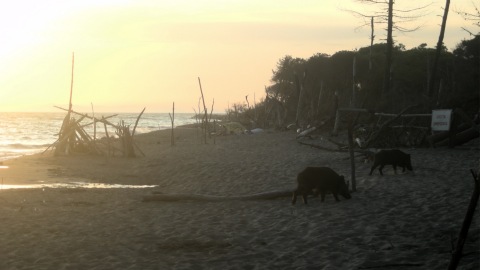 Se siete fortunati al calare del sole avrete anche la possibilità di vedere scorrazzare in spiaggia i cinghiali alla ricerca di quel che resta dei pranzi dei turisti.