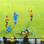 Orquera si prepara e tira; la Fiesole esulta perchè grazie all’effetto ottico sembra che la palla sia davvero entrata tra i pali, regalando il pareggio meritato: purtroppo non è così e la delusione è grande ma il sostegno agli azzurri non manca, con l’incitazione di tutto lo stadio “Italia, Italia” che accompagna lo scattare dell’80° minuto di gioco: ed il calcio in touche dell’Australia, che chiude la partita, è accolto con amarezza.